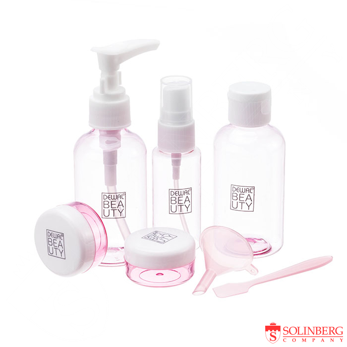 Главная / Каталог / Парикмахерские принадлежности / Для окрашивания / Чаши / Дорожный набор баночек для путешествий Dewal Beauty. Состав набора : Бутылка 80 мл с дозатором, буты