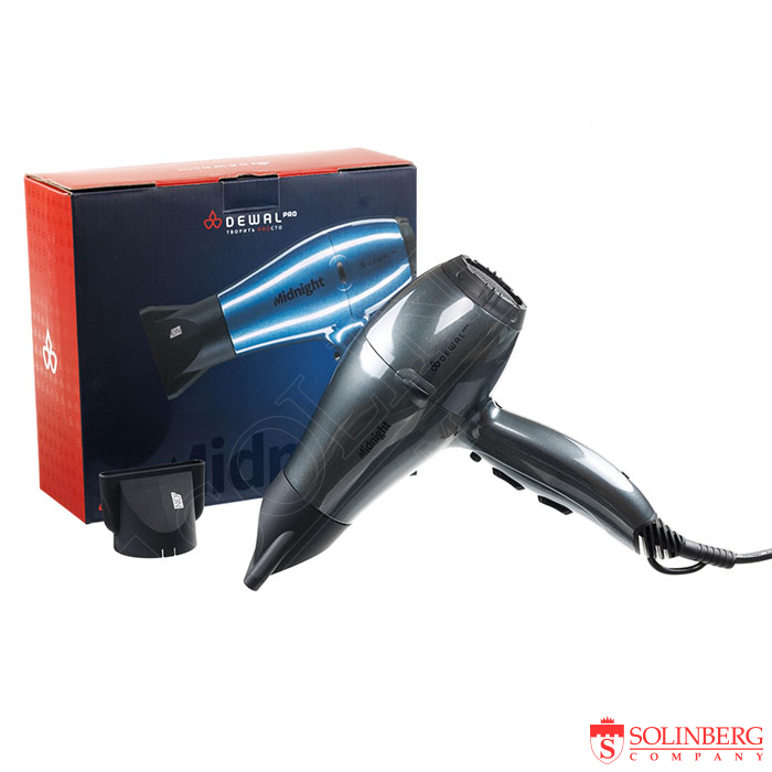 Главная / Каталог / Электротовары / Фен DEWAL PRO MIDNIGHT, серый, вес 550гр, 2000Вт, ионизация, 2 нас, провод 3м