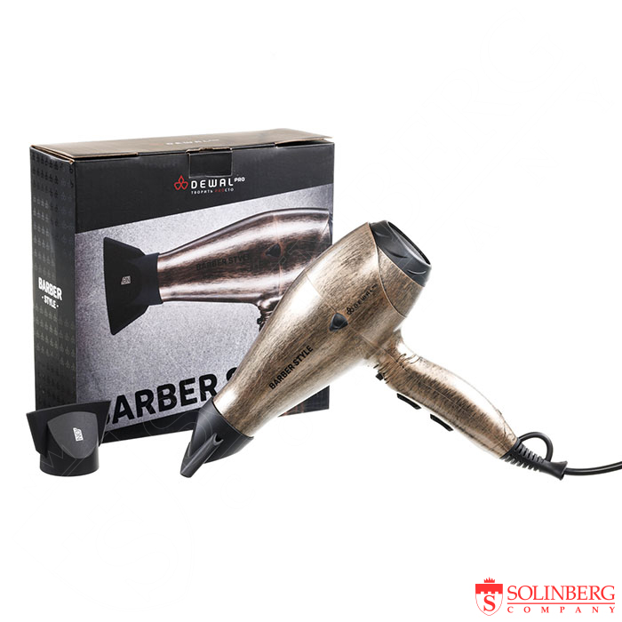 Главная / Каталог / Электротовары / Фен DEWAL PRO BARBER STYLE, бронзовый, вес 570гр, 2200Вт, ионизация, 2 насадки, провод 3м