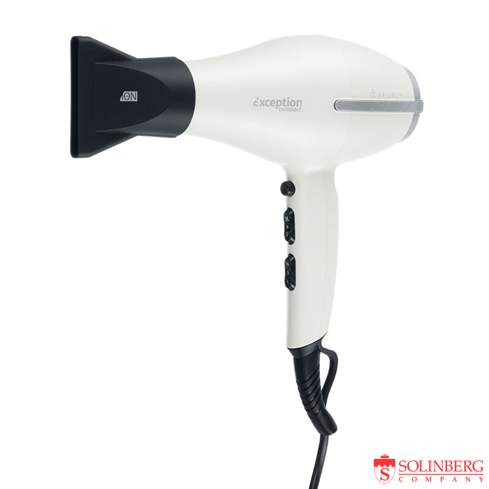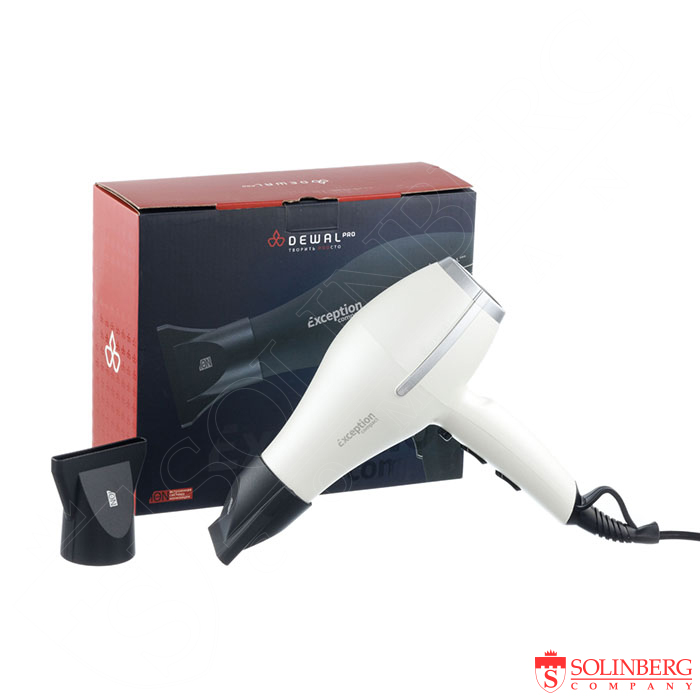 Главная / Каталог / Фены для волос / Dewal / Фен DEWAL EXCEPTION Compact 2200 белый, компактный 2200 Вт, ионизация, 2 насадки, провод 3м