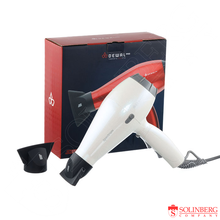 Главная / Каталог / Фены для волос / Dewal / Фен DEWAL SPECTRUM, жемчужный, вес 600гр, 2200Вт, ионизация, 2 нас, провод 3м